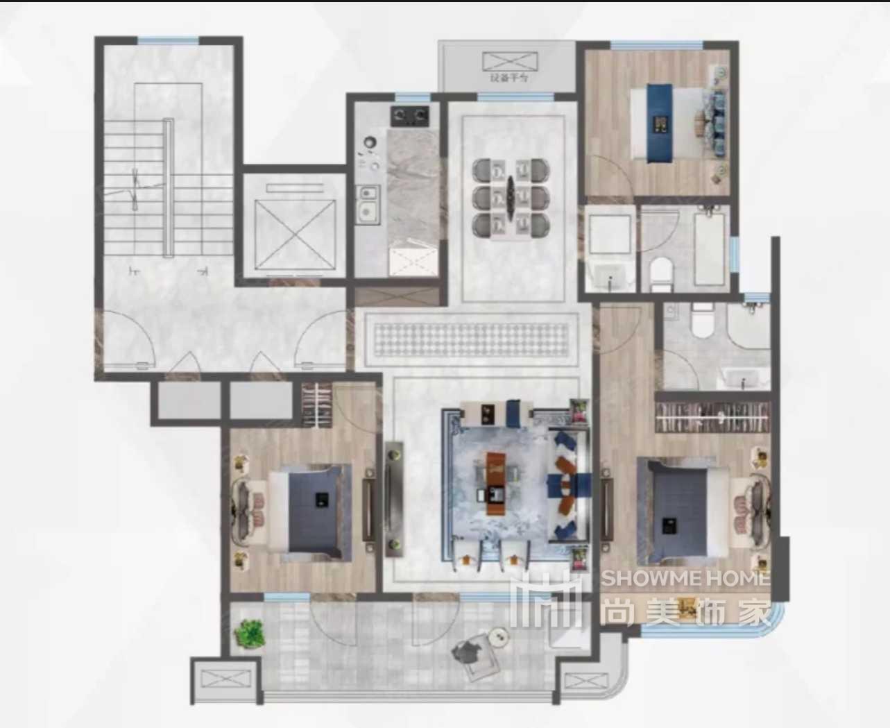 3室2厅2卫 117m²