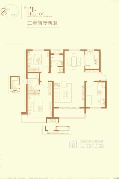 3室2厅2卫1厨 | 125m²