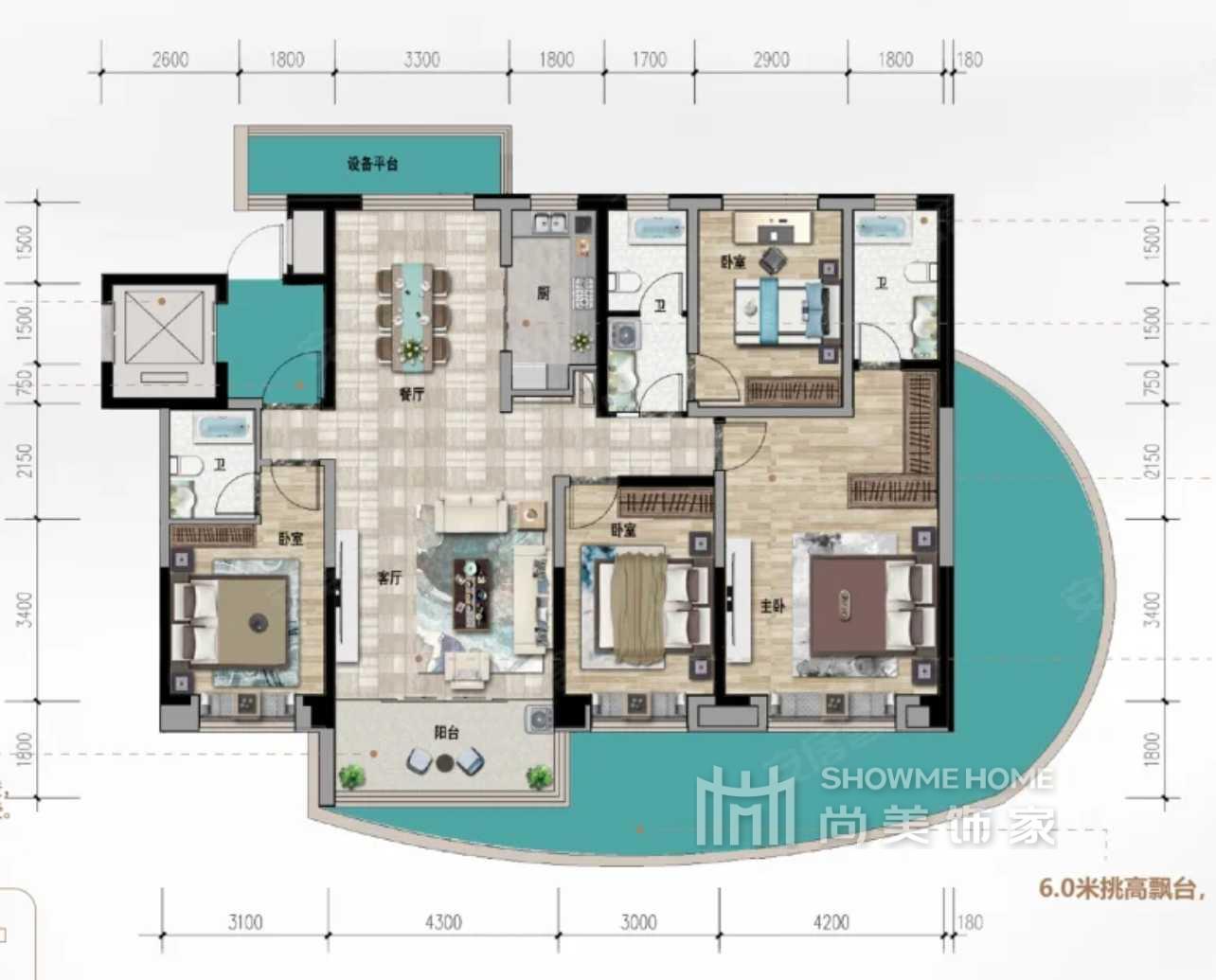 龙翔-江东华府 | 4室2厅3卫 156m²